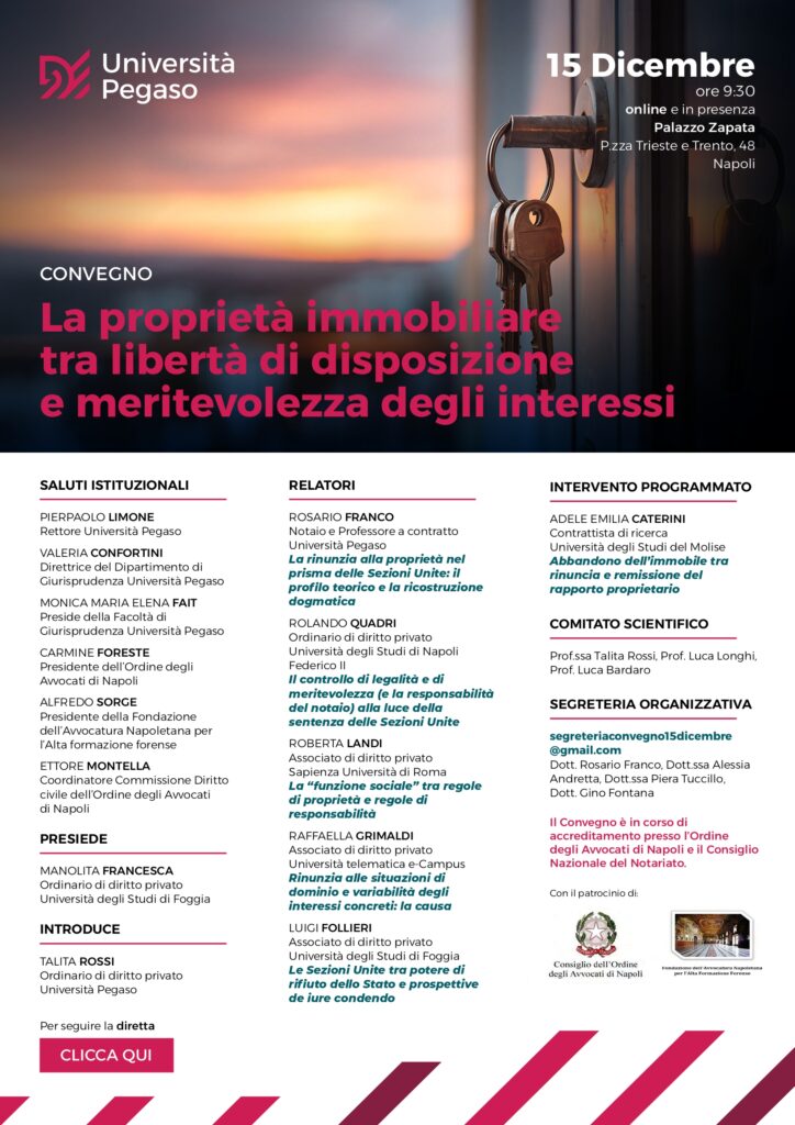 15 dicembre 2025 ore 09:30 – La proprietà immobiliare tra libertà di disposizione e meritevolezza degli interessi